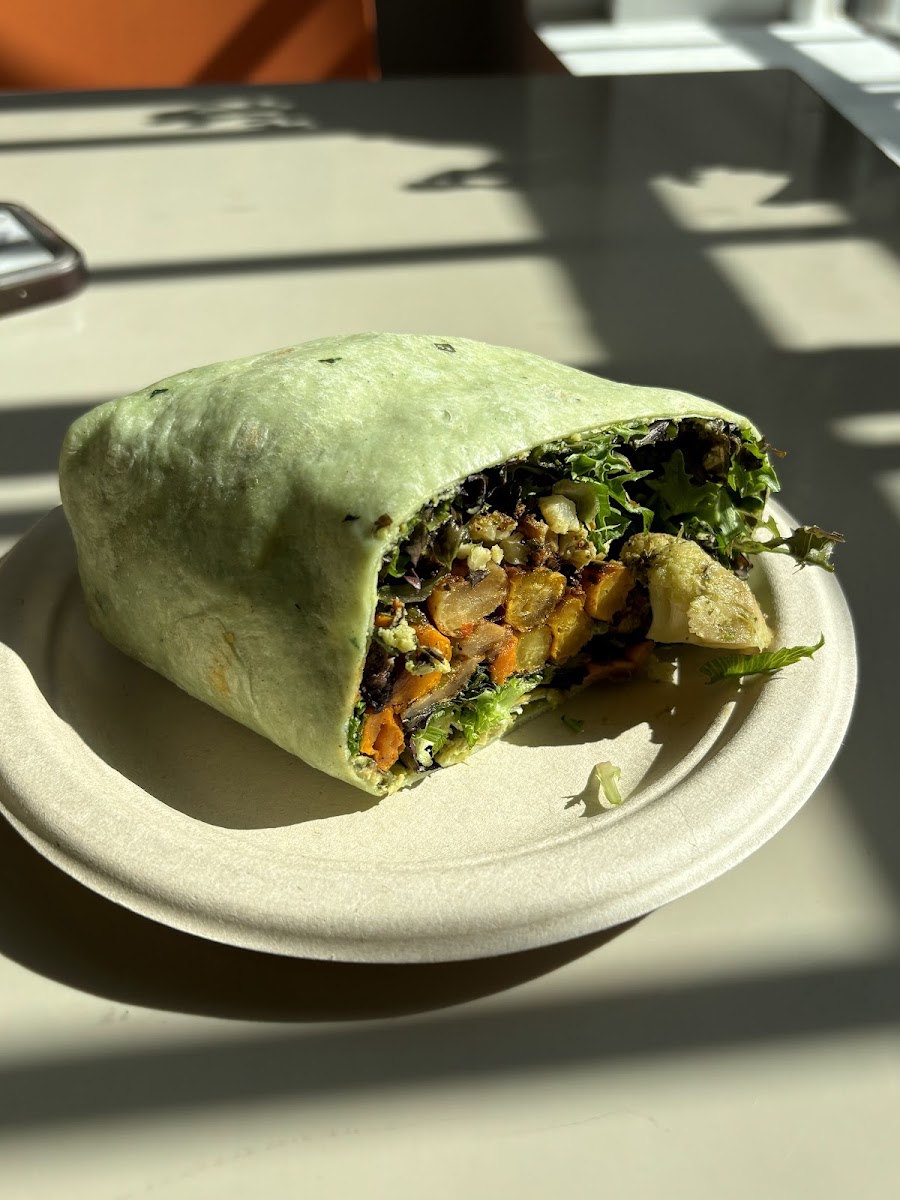 One mediocre vegan wrap (no modifications due to food being premade) but the blueberry matcha was pretty good